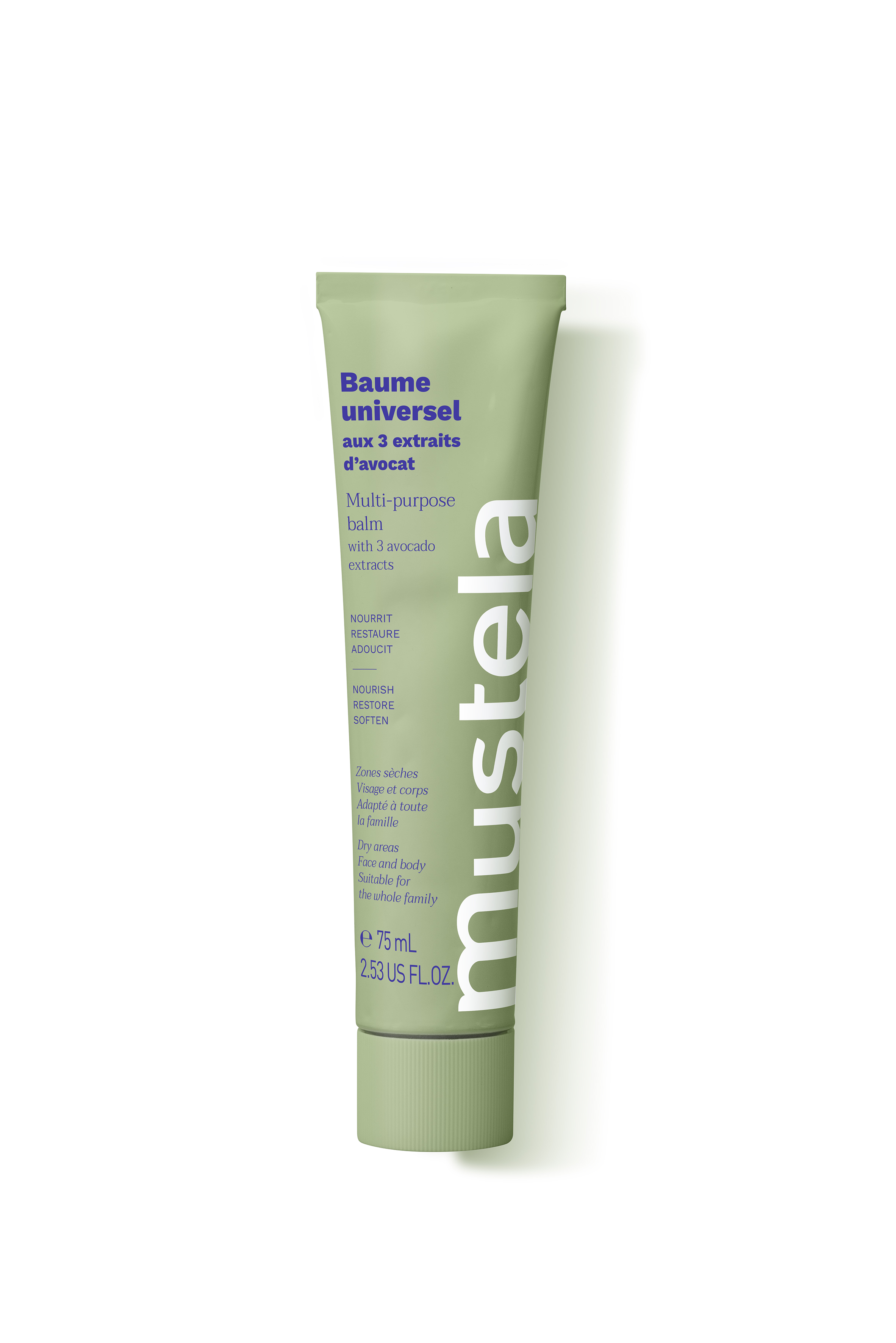 The Multi-Purpose Balm with 3 Avocado Extracts nourishes, repairs and protects all dry areas (face, lips, hands, feet, elbows, etc).