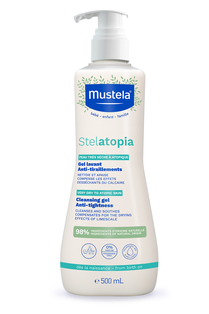 Stelatopia Cleansing gel is specially designed to provide instant relief to babies and newborns* with extremely dry skin. It compensates for the drying effect of water and soothes skin irritations. Its formula countains 98% of natural origin ingredients and its key active ingredient comes from organic sunflowers, with proven soothing properties.